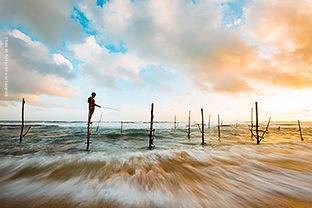 Comenzamos nuestro día trasladándonos a Weligama. Aquí aún podemos ver a los pintorescos pescadores y su característica forma de pescar subidos desde un zanco. Este método de pesca tradicional, también conocido como ritipanna en cingalés, consiste en pescar desde una caña estrecha atada a un palo instalado en el fondo del mar.