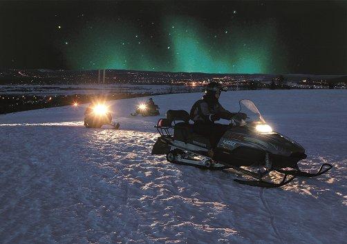 Desayuno y salida para una jornada de pura adrenalina conduciendo motos de nieve en parejas a través de los bosques nevados de Laponia; a mitad de camino será posible intercambiar asientos para que todos puedan conducir. La actividad se realiza en grupos reducidos de máximo 8 personas.