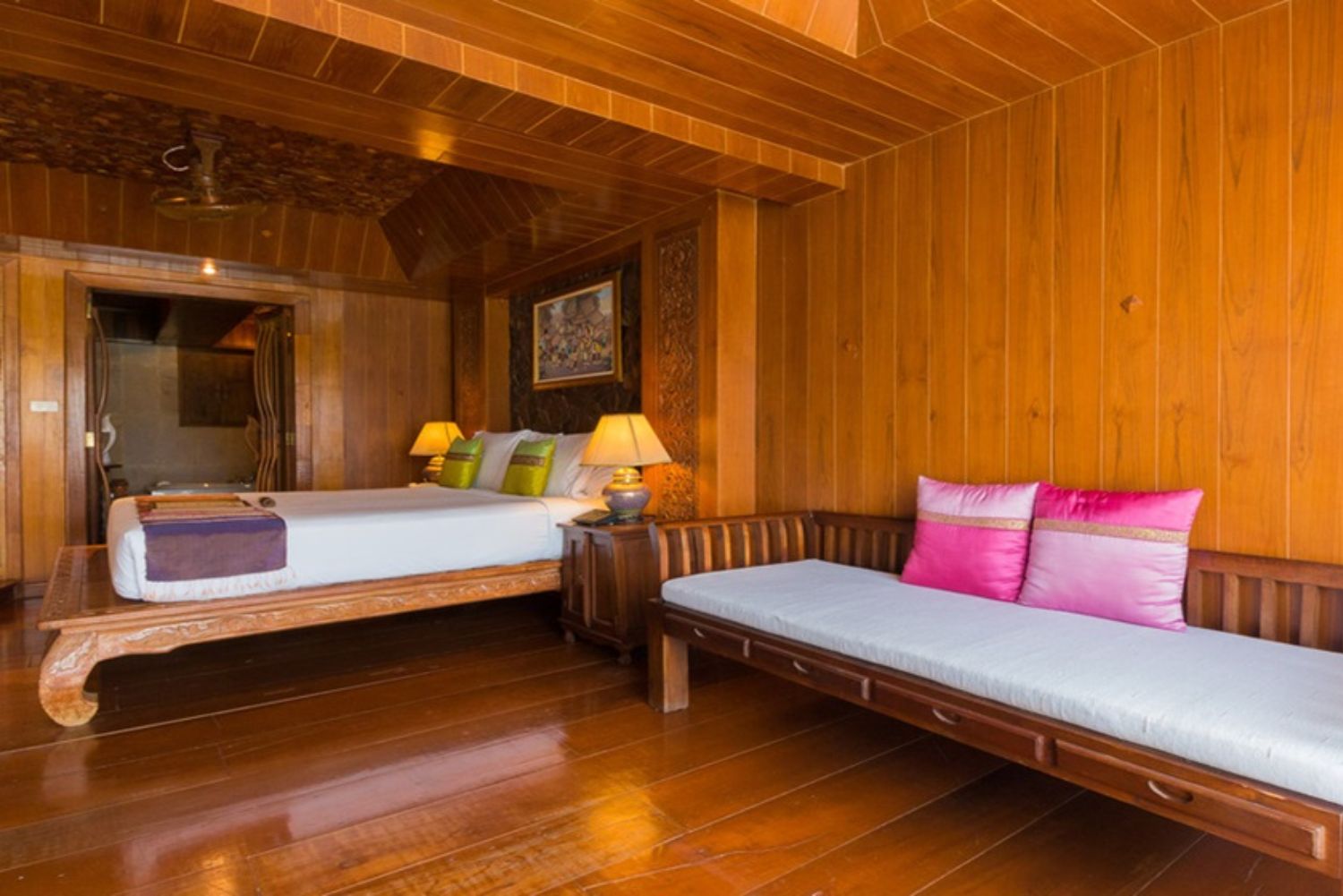 La habitación Supreme Deluxe está situada en un edificio bajo de tres plantas, con vistas al mar que le rodean de abundante naturaleza. El lujoso interior de cada habitación está decorado con tallas de madera dorada al estilo tailandés. Además, podrá disfrutar de un ambiente agradable en su terraza privada.